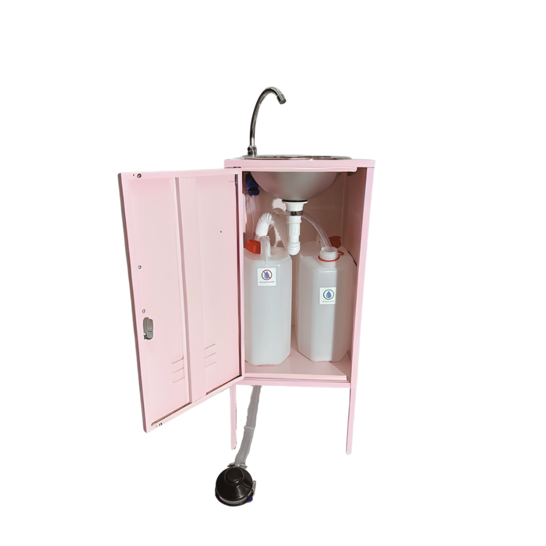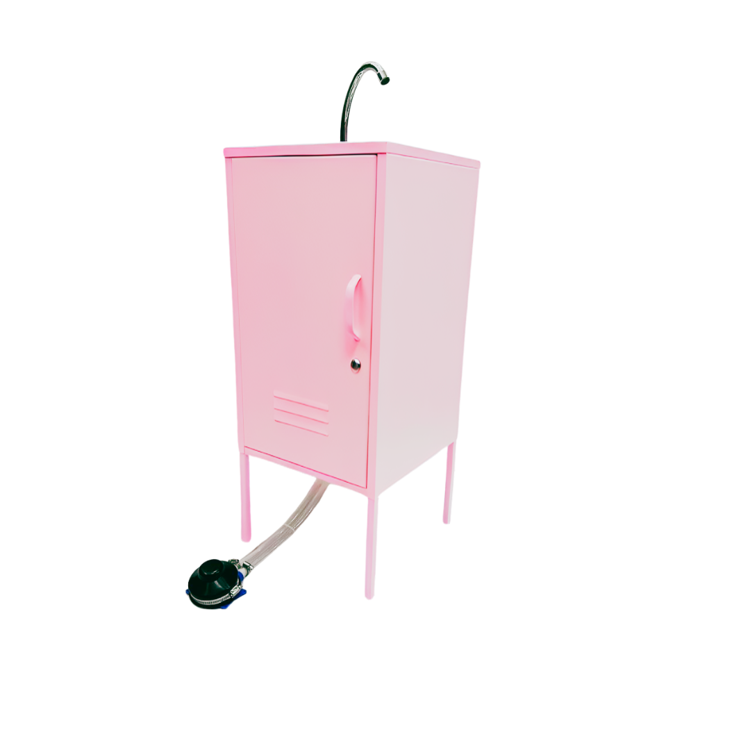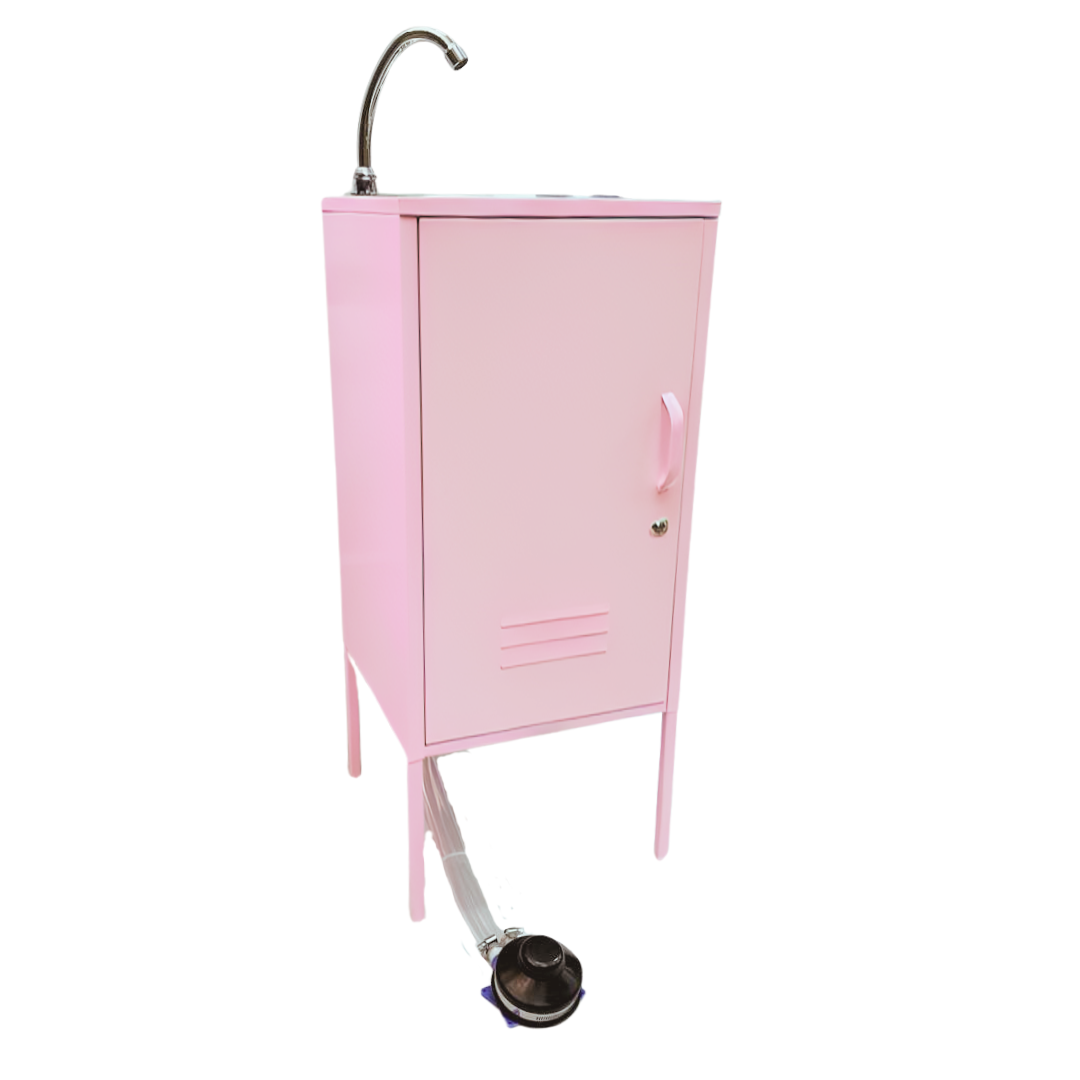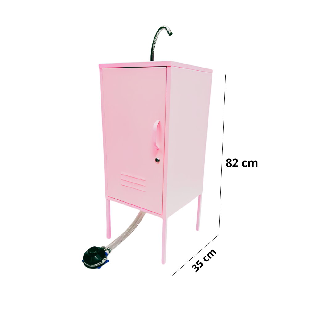 The Independent Sink Giorgia (elegant pink finish) is the independent sink that brings professional hygiene everywhere, without the need for a water or electricity network. Ideal for beauty salons, tattoo parlors, food trucks and medical offices, it combines Italian design and compact functionality in just 35 × 35 × 82 cm.